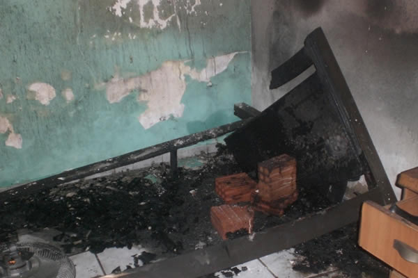 O acusado já tinha queimado a cama, o colchão e outros pertences no quarto do casal quando foi detido e amarrado por vizinhos que o entregaram aos PMs. Em uma viatura da polícia, os dois foram levados para a Delegacia Regional de Polícia Civil. Raimundo já esteve na DRPC há três anos quando foi preso no dia 2 de abril de 2009 armado com uma faca e causando temor às pessoas no Sítio Popôs.