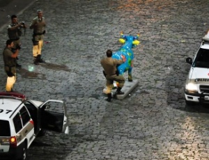 A informação foi repassada pelo promotor da Justiça Militar Sidney Eloy Dalabrida. Os quatro PMs já haviam sido afastados das atividades pela "brincadeira", feita ao lado do Mercado Público, num momento em que a área parecia praticamente deserta.