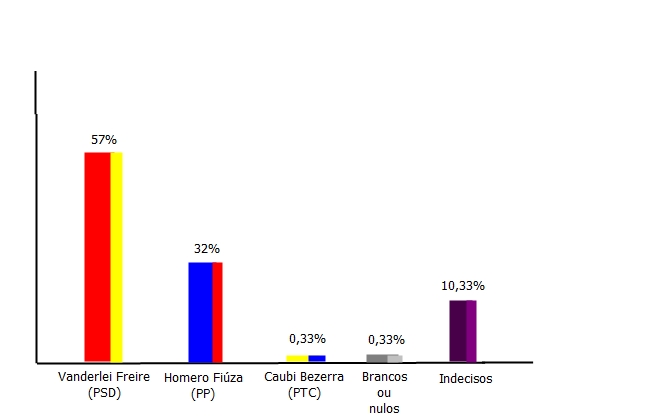 Numa pesquisa estimulada do Instituto Alternativa Dados Estatísticos, realizada no município no dia 28 de setembro, com 300 entrevistados, o candidato Vanderlei Freire tem 57% das intenções de voto, o candidato Homero Fiúza (PP), tem 32%, e o candidato do PTC, Caubi Bezerra, aparece na com 0,33% das intenções de voto.