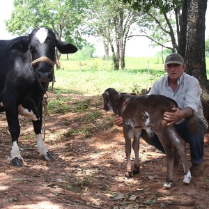 Gilberto Pappi com a vaca princesa e o filhote Robalto