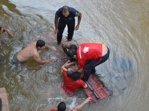 Bombeiros no momento do salvamento