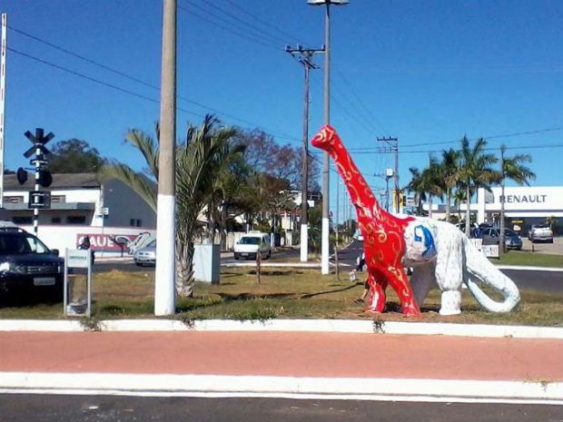 A Secretaria de Estado da Cultura, através das Oficinas Culturais, registrou nesta segunda-feira (27) em Marília (SP) um boletim de ocorrência do furto de uma estátua de dinossauro. A peça foi instalada há pouco tempo em uma rotatória na zona sul da cidade e desapareceu durante a madrugada. A secretaria encomendou a construção de seis estátuas de dinossauros, que medem cerca de 4 m de altura, 6,75 m de comprimento e pesam cerca de 40 kg; cada uma custou R$ 3 mil. "As obras foram colocadas em cada região da cidade como um movimento cultural, já que Marília é reconhecida pelo estudo da paleontologia". Além da estátua ter sido furtada, outras duas também foram danificadas na madrugada. A polícia já abriu um inquérito para investigar o caso. Ainda não há pistas dos suspeitos e nem de como eles conseguiram levar a estátua.