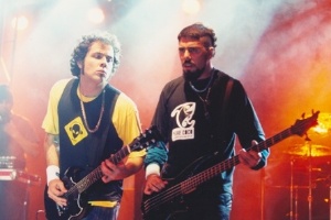 O guitarrista Nettinho (esq) toca ao lado do baixista Tchello, no festival do Mada, em 2003, em Natal