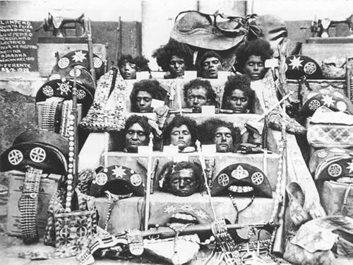 Na histórica imagem, cuja a autoria é desconhecida, a cabeça de Lampião é colocada em destaque, isolada, logo abaixo da mesma parte do corpo de Maria Bonita. Ao lado, os principais membros do grupo do cangaceiro, mortos na emboscada, e os pertences do bando.