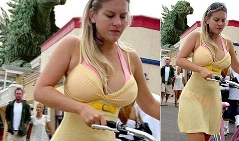 Percebe o que há de estranho nesta imagem? O decote desvia tanto o olhar, que em geral pouca gente nota o "monstro" verde ao fundo