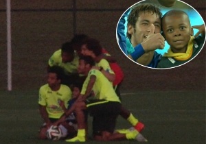 Uma criança invadiu o gramado neste domingo e quando estava próximo dos jogadores, dois seguranças impediram o contato do menino e o retiraram do treino. Ao entrar no gramado, o garotinho mostrou certa habilidade e até conseguiu driblar um agente. Ao perceber que os seguranças estavam tirando o garoto, Neymar atravessou todo o gramado e evitou que isso acontecesse. Além de evitar a retirada, o jogador do Barcelona levou o menino para tirar fotos com os jogadores da seleção. Depois de posar para imagens, ele saiu tranquilamente do campo. Essa não é a primeira vez que Neymar tem uma atitude parecida com essa. No amistoso entre Brasil e África do Sul, ele fez o mesmo com um garoto que entrou no gramado.