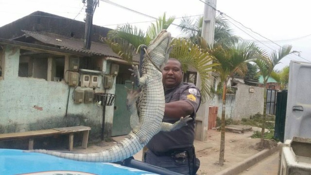 um jacaré na casa de um homem acusado de tráfico de drogas em Itaboraí, na