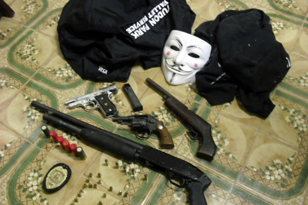 pessoas, apreensão de armas, munições, bala clavas, dinheiro e droga. A ação