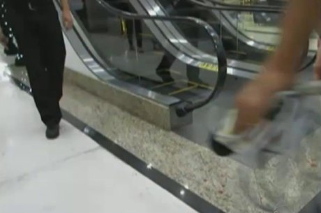 braço na escada rolante de um shopping em Ponta Grossa, no Paraná. Segundo