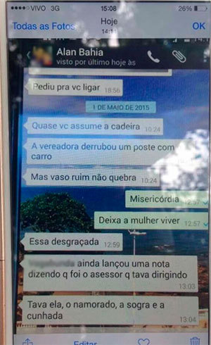 watsApp, onde ele falava mal e xingava a vereadora Aline Oliveira (PP), vazar