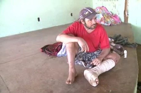 que teve o pé enfaixado devido às queimaduras. Os agressores ainda não foram