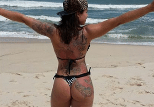 Rita Mattos, a Gari Gata, posa de fio-dental e ganha elogios