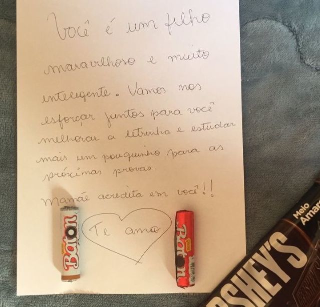nota baixa na escola. Em vez de dar uma “bronca”, a mãe resolveu deixar uma