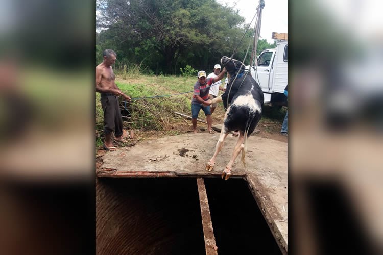 para resgatar um boi de quase 200 quilos que havia caído em um cacimbão de nove