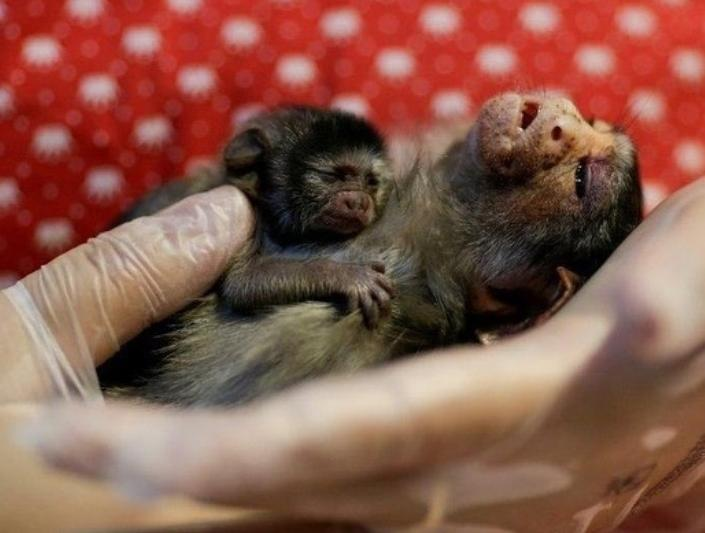 Xita é uma pequena macaca sagui que foi fotografada segurando