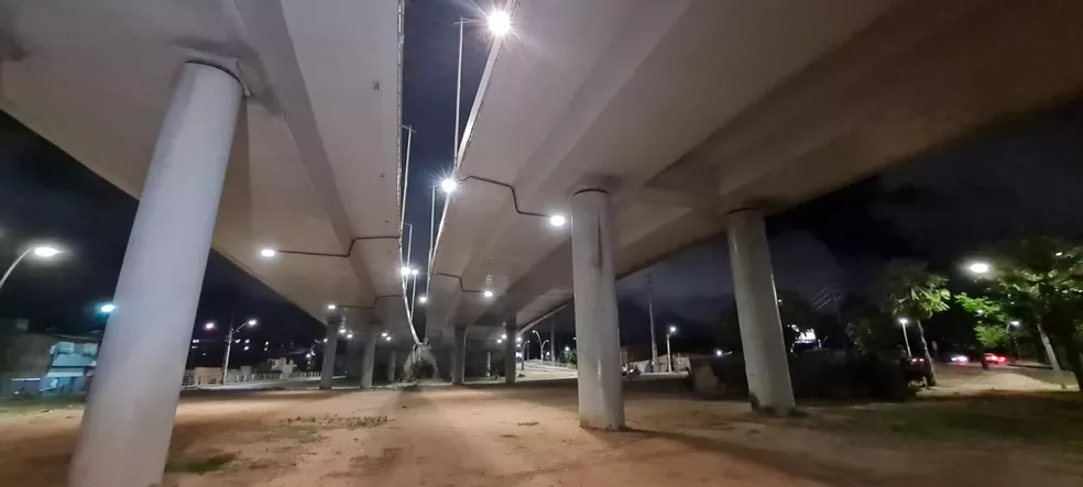 do viaduto, mas caiu por um espaço que separa as duas pistas do elevado. Ele